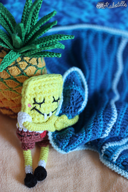Du côté « eau profonde », j'ai placé Bob de façon à ce qu'il tienne la "mer" par un coin comme un graaaand doudou ou une grande couverture. Et le résultat est finalement bien meilleur que ce que j'imaginais quand on m'a demandé Bob l'éponge ! 🤩